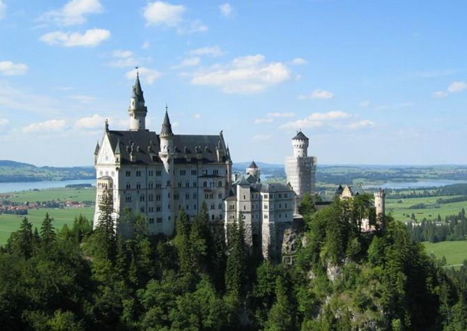 這座城堡是巴伐利亞國王路德維希二世的行宮之一。共有360個房間,其中只有14個房間依照設計完工,其他的346個房間則因為國王在1886年逝世而未完成。是德國境內受拍照最多的建筑物,也是最受歡迎的旅游景點之一。新天鵝城堡是德國的象征,世界上沒有一個國家像德國那樣擁有如此眾多的城堡,據說目前仍有14000個。在眾多的城堡中,最著名的是位于慕尼黑以南富森(Fussen)的阿爾卑斯山麓的新天鵝城堡。由于是迪斯尼城堡的原型,也有人叫白雪公主城堡。建于1869年。從奧格斯堡到富森,光是坐火車一路的風景都會讓遐思神往。這猶如人間仙境的地方藏著有關魔法、國王,騎士的古老的民間傳說,還有那無邊原始的森林、柔嫩的山坡、無邊的綠野上漫步著成群的牛羊,積雪終年的阿爾卑斯山和無盡寬闊的大湖。
