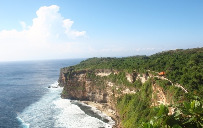 烏魯瓦圖斷崖位于巴厘島最南端。它的背后有一段凄美的愛情悲劇。傳說當地有對門戶不當的青年男女相戀,女方的父親是村長,因此兩人的愛情的不到任何祝福,在絕望之下雙雙投海殉情。為此地平添了離奇色彩。