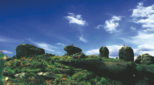 日出:在高高的山頂,激動人心的要數觀日出了,萬籟俱寂的清晨,登上撩望臺,舉目遠眺,一輪紅日噴薄而出,天地間瞬時霞光萬道,叢林盡染。介于怪石的靜態美與日出的動態美之間,又有云海的獨特美,玉蒼山似真似幻的云海隨著季節的變換顯示出獨特的魅力。冬天層云鋪天蓋地,群峰盡隱,海天一色;一到夏季,流動云霧裹著陣陣山風從林中、石縫里翻涌而來,時而遮天蔽日,時而碧光萬里。