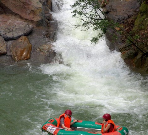 “五星漂流”座落于清遠市清新縣太和鎮五星村委會,北面是雄偉的筆架山,南面是廣闊的清西平原和滾滾北江,依山傍水、綠樹成蔭、是理想的生態休閑風景區。五星漂流度假區首期投資近億元,整個景區占地面積2400畝。度假區內壩擁有3.2平方公里的水面,上游五星水庫儲水量達300萬立方米以上。度假區包括漂流、高爾夫練習場、攀巖、美食城、水上運動場、度假別墅、星級酒店、自行車賽區、越野車會所等十多個項目。首期投資的漂流景區和美食城將于5月1日對外接待游客,版權所有山東聊城聊之旅國際旅行社有限公司,轉載必究!預計每天接待能力可達8000—12000人次 。