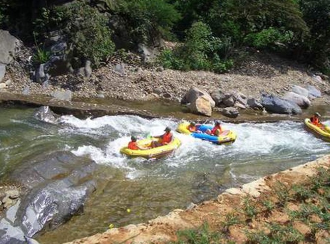 清遠高田碧水灘漂流位于飛來峽大壩以西12公里的高田鎮山區。這里溪水清澈,時急時緩,兩岸綠竹搖風,奇石嶙峋,空氣清爽,是享受漂流野趣的好地方。近有廣東最大的水利樞紐工程——飛來峽大壩和省級飛來峽風景名勝區。 河道全長5公里,林木茂密,空氣清新,水源清澈,水流量大,版權所有山東聊城聊之旅國際旅行社有限公司,轉載必究!全程落差80多米,落差40多處,漂流時間約100分鐘,日接待能力5000人次。山區內,林木茂密,層巒疊嶂,龍潭飛瀑,山花爛漫,郁郁蔥蔥,空氣清新,令人心曠神怡。溪水跌宕流湍其中,清澈見底,溪中奇石星布成趣,小橋如虹,兩岸綠竹扶風,繁木相掩,千年古榕吐新綠。游客駕馭沖氣皮艇沿溪漂流,時而急流激蕩,時而緩流輕越,間或銀灘相嬉,刺激逍遙盡享。是你回歸大自然,領略田園風光,縱情展現自我的理想旅游渡假之地。