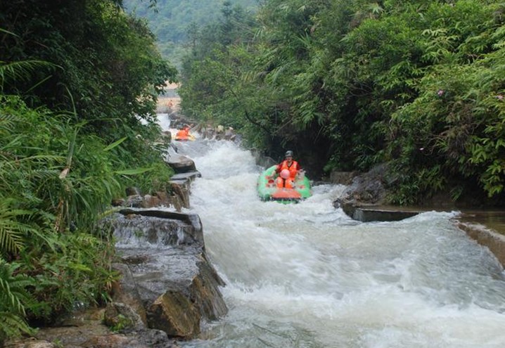 銀盞黃龍峽漂流——清遠漂流第一站! 銀盞黃龍峽漂流位于廣清高速銀盞收費站出口右轉8公里處(原國營銀盞林場),具有得天獨厚的地理環境和自然風光優勢,經漂流設計精英依山取材、精心打造,黃龍峽漂流河道在深山之中蜿蜒約4.3公里,河道首尾落差約108米,最高落差約20米,整條河道有幾十個跌差之多,一路白練碧潭、奇趣紛呈、驚險不斷,全國唯一的雙S回旋彎賽道及多個精心賽道設計讓游人真正體驗到挑戰自我的樂趣,而整個河道經年初精心整葺,煥然一新,水質大幅提升之余亦做足安全保障。