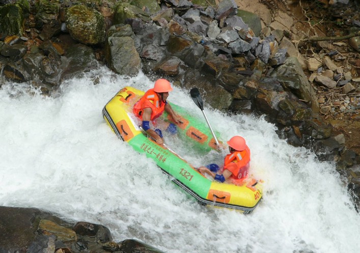 全程勇猛漂河道長4.8公里,總落差168米,大小落差有130多處,漂時150--180分鐘。全程既可感受澎湃刺激而安全的漂流,又能在自然生態的環境中享受一流水質的無窮魅力:漂過一山又一山,賞盡一景又一景;人在水中漂,如在畫中游。(提示:1.3米以下的游客請勿參與,16歲以下的游客請在成人陪同下參與