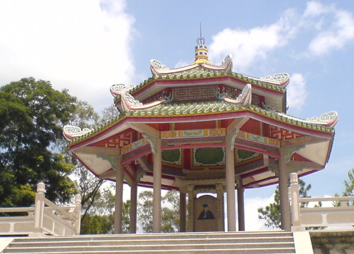 位于海豐縣城北面的五坡嶺上(編者注:彭湃中學后面),坐西北向東南,占地960平方米。前面分五層34級臺階,臺階上面是一幅長20米、寬13米的月臺,中心建一重檐攢尖頂,通高9米。亭內后側再置一廡殿頂小石亭,高3.9米,內豎一碑,高2.7米,寬0.9米,刻文天祥畫像。該亭為紀念南宋民族英雄文天祥當年方飯五坡嶺時不幸被捕而建,故取名“方飯亭”。