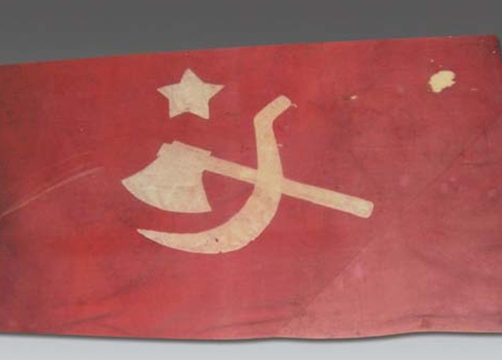 海豐農民運動在彭湃同志的帶領和中國共產黨的領導下,取得了很大的成就,于1927年11月建立了全國第一個蘇維埃政權——海豐縣蘇維埃政府。該旗為1927年蘇維埃時期的黨旗,是我黨較早的一面旗幟。