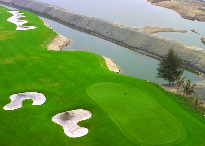 5公里長的海岸線,地勢平緩,灘如銀雪,灣如新月。充滿水鄉韻味的球場內,一條全長2.5公里的小河,星羅棋布的人工湖,與小河交織成網,將球場雕塑成一塊塊開狀各異的“綠州”。揮桿者劃舟打球,成為球場一大特色。每一個球道均有形態各異、巧奪天工的天然奇石作為標志,如鳴鹿、似靈猴、千態萬象,令人浮想聯翩。紅海灣盛產石斑、龍蝦、海膽、血鰻等名貴海鮮,可供球會貴客享受到最新鮮的美味。球場將聘請世界著名高爾夫運動員冠名,并將積極舉辦PGA巡回賽以及其他國際高等級賽事,把球場的魅力推向世界。