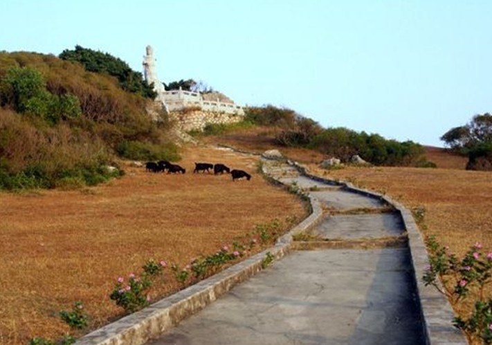 “龜身”實際就是一個小土包,上面樹木蔥蘢,密集而有層次。島上漁民介紹,樹林中現在還有不少野山羊,漁民們認為它們是屬于保護神———媽祖的。