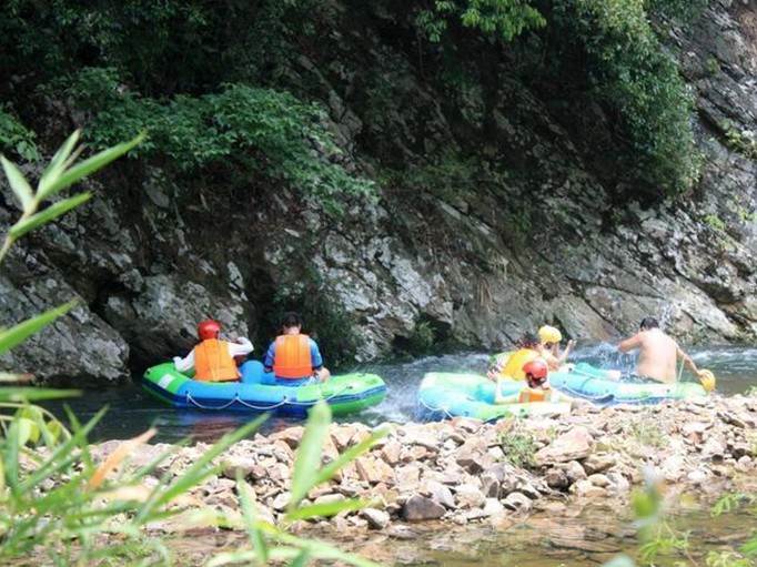 靈溪河漂流是其中極具特色的水上運動項目,靈溪河漂流全程6公里,其中休閑漂2.8公里,急流漂3.2公里,全程漂流時間2.5小時。版權所有山東聊城聊之旅國際旅行社有限公司,轉載必究!休閑漂段視野開闊、瑤族風情濃厚,兩岸古老村莊、古樹、客家大圍保存完整,河水走勢平緩、蕩漾其中,悠然自得;急流漂段峽谷林立,氣勢幽深,峭壁險灘連成一體,河水急中有緩,驚險刺激,另有架空索道(建設中)沿河飛天而過,水天相接,構成一幅優美而壯觀的圖畫,這在全國還是絕無僅有的,故稱之為“中國飛索第一漂”。
