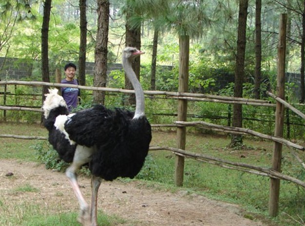 粵北韶關乳源瑤族自治縣位于美如瑞士山的南嶺南麓丘陵山區,這里終年氣候溫和,塵污不染,一片青蔥翠綠,澗水成濤,野生動植物竟相斗艷,是大自然處女寶地,二十世紀末,這個原始寶地成功孕育了一批南非鴕鳥新移民,融合在瑤族風情文化社會里,人們稱它為鴕鳥瑤寨。