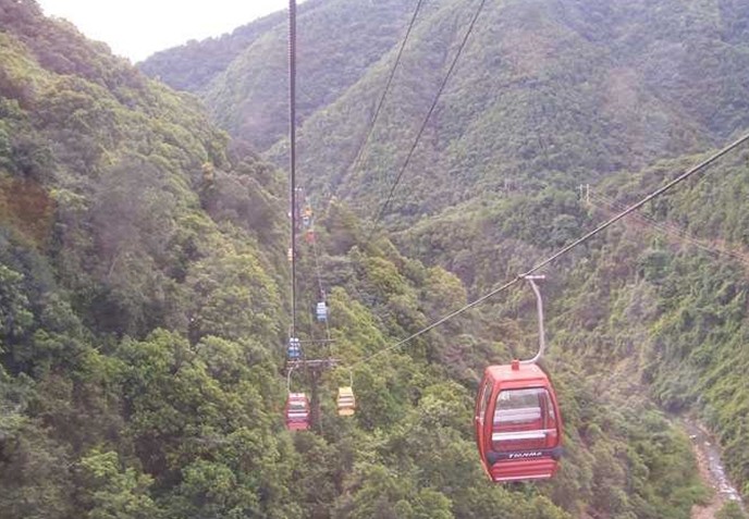 宛如巨龍騰翔的丹霞山靈溪河大峽谷觀光索道全長1520.3米,乘坐時間約28分鐘,是粵西北地區最長的索道之一,乘坐靈溪河大峽谷觀光索道可讓您在空中盡情的觀賞靈溪河大峽谷風景。在靈溪河大峽谷景區內:山高水長,樹木參天;各種野生植物錯落茂密、別具一格;香花爭妍斗艷,物種繁多;在春夏之交雨水充足的天氣里靈溪山林間有一“靈溪河激流潭瀑布”飛流直下,一瀉千里,雄麗壯觀,如此時來游玩的游客定能被如此醉人佳景所迷倒