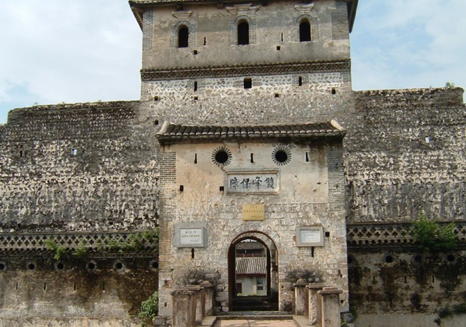 雙峰寨,外形成長(zhǎng)方形,石灰及青磚砌成,是少有的巨型寨堡。