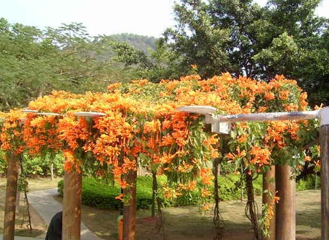 人工疏林草地植被樹木種類較多,層次較簡單,林木主要有南洋楹、檸檬桉、白千層、鳳凰木、蒲葵等20多種,林下植物主要以毛杜鵑、龍船花等植物為主;園內(nèi)綠化特色樹種為美麗異木棉、宮粉紫荊等植物。緩坡地種植的毛杜鵑每到開花季節(jié)漫山一片通紅,景色非常優(yōu)美。環(huán)山路邊的二喬木蘭、美麗異木棉,到了開花季節(jié)沿路色彩斑斕,自然景觀非常壯麗。“2002-2003年,靠北環(huán)路邊以杉木、馬尾松、馬占相思為主的人工林,由于結構單一,并已老化,已進行了林分改造,在保留鴨腳木、山烏桕、野漆樹等具有景觀效果的野生樹種,混交配置了鳳凰木、大葉紫薇、火焰木、美麗異木棉、宮粉紫荊、紅花荷等骨干樹種,形成了層次鮮明,景觀效果高的生態(tài)風景林。山脊線主要是以荷木、大葉相思、臺灣相思組成的防火林帶。”筆架山公園管理處負責人向記者介紹,“為給廣大市民呈現(xiàn)多姿多彩的公園景象,我們在2003年沿北環(huán)繞路邊山體種植了彩色林、紫荊花樹,改變公園單一色彩,興建彩色林帶。”現(xiàn)在,公園綠化面積40多萬平方米,種植喬灌木5萬多株,形成層次明顯、色彩較為豐富的景觀。