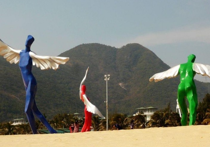 處于公園的中心,總面積達13萬平方米,有3個大小不一,風格各異的張拉膜,每個張拉膜下都設有供游客休閑、更衣、洗手的各種設施。廣場的建設充分考慮到自然景觀和人文景觀的結合及層次,將各種植被及海洋、沙灘充分結合,使之相互映襯。站在廣場上極目遠眺,茫茫水際碧波蕩漾,金黃的沙灘熠熠生輝。海風拂過,廣場上樹影婆娑;艷陽之下,濃濃的綠意使夏日的酷暑黯然消退。