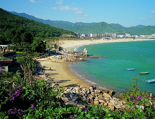 大梅沙海濱公園是位于神奇秀麗的南海之濱、風光旖旎的大鵬灣畔、深圳特區的東部。這里三面青山相擁,中間開闊開緩,一面臨海,1800米的沙灘就鑲嵌在這青山碧海之間。