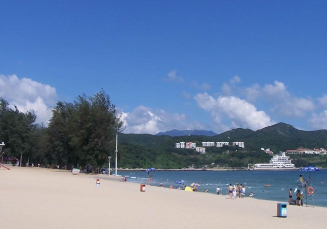 金沙灣海濱度假區位于深圳市東部海濱大鵬鎮,是深圳東部黃金海岸重要景點之一。這里背依溫柔環抱的群山,海域面積達25萬平方米,陸地面積15萬平方米,綠化面積高達80%,有綿延四公里沙質柔軟的沙灘,最為潔凈清澈的海水,金色的優質沙灘,沙灘生有萬種風情的松林。山光水色、林濤海韻、潛水征帆構成了一幅風光旖旎、風景迷人的海濱圖畫,完整的旅游配套設施,作為高品質的海濱休閑度假的首選。