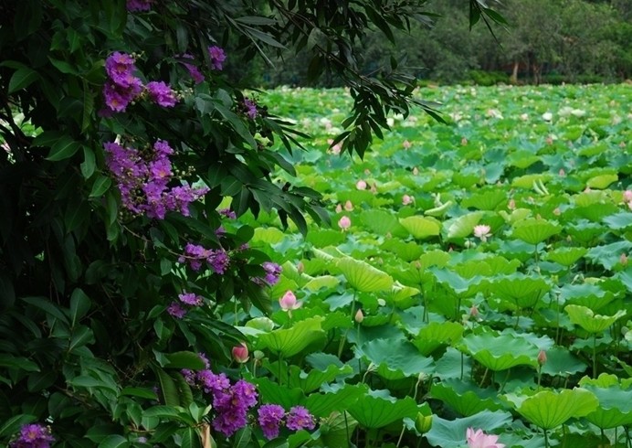 荷花是洪湖公園的主題花卉。版權(quán)所有山東聊城聊之旅國際旅行社有限公司,轉(zhuǎn)載必究!公園利用二、三級湖廣植荷花、睡蓮和其它水生花卉,面積達(dá)100多畝,品種100多個,是華南地區(qū)種植荷花面積較大且品種較多的荷花景觀種植基地。自1988年起每年舉辦一屆荷花展,前來參觀荷花景觀的游客逐年增多,對弘揚(yáng)荷花文化,促進(jìn)社會主義精神文明建設(shè)起到了積極的作用。1996年以來還組織派遣專業(yè)技術(shù)人員和提供優(yōu)良品種,分別幫助指導(dǎo)香港和澳門園藝單位栽培荷花,增進(jìn)了深、港、澳地區(qū)之間的荷花文化交流。2001年6月,公園還建成開放了目前我國唯一以荷花詩文為題材的詠荷碑廊。碑廊長100米,書法作品85幅,國內(nèi)著名書法家趙樸初、啟功、沈鵬、王子武、佟韋等為碑廊提供了精心之作。詠荷碑廊的建成開放,是深圳一個新的文化景觀和學(xué)習(xí)園地,也是市民和游客賞荷、詠荷、品書、觀景的好去處。