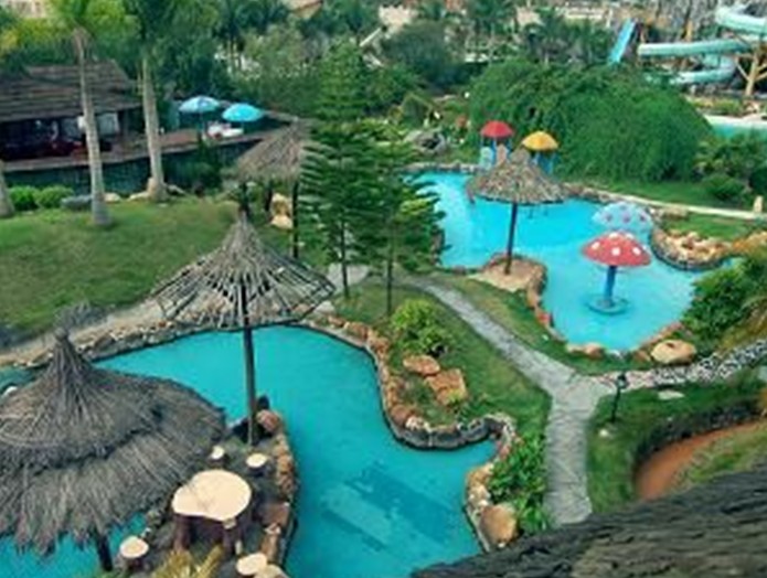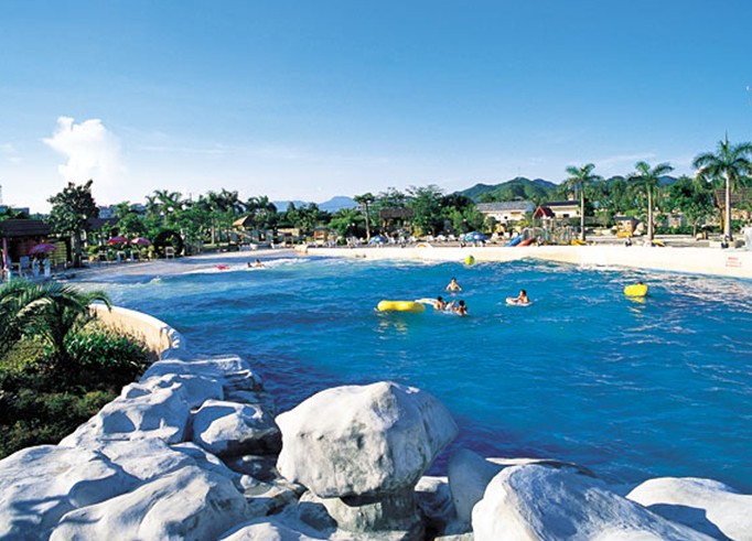 溫泉區大型水上樂園,占地5000平方米,設有人造海浪、超高刺激滑道、成人游泳池、兒童戲水池等,必將給游客的夏日之旅帶來絲絲涼意和無盡樂趣。裝修獨特的水一方酒吧,提供精美小食和免費飲品,讓人在享受溫泉的同時,也可三五知己談天論地,品味人生,是舒解壓力、洗滌煩囂的理想去處。