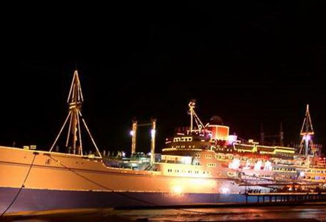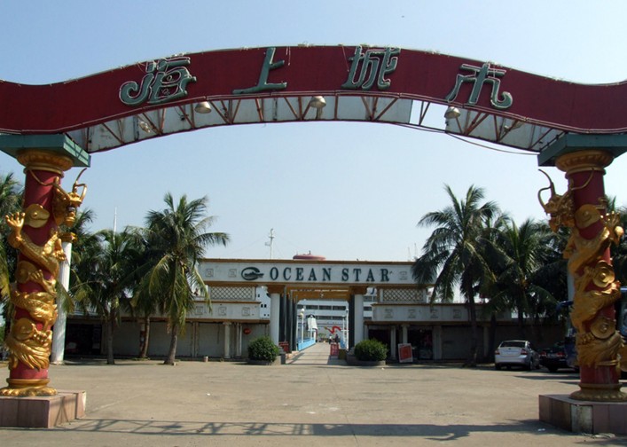 “海上城市”原名“巴西瑪魯”,是日本一艘國(guó)際遠(yuǎn)航客貨輪,已有四五十年的歷史,船長(zhǎng) 156米、寬19.6米,共有七層,排水量達(dá)1.7萬(wàn)噸。1954年下水,1951年載中日友好青年代表團(tuán)訪問(wèn)中國(guó),后改為旅游船,停泊在日本旅游勝地鳥羽市港灣,1997年由珠海華瑩集團(tuán)引進(jìn),次年落戶于湛江,與雄偉的南海艦隊(duì)軍港隔海相望。
