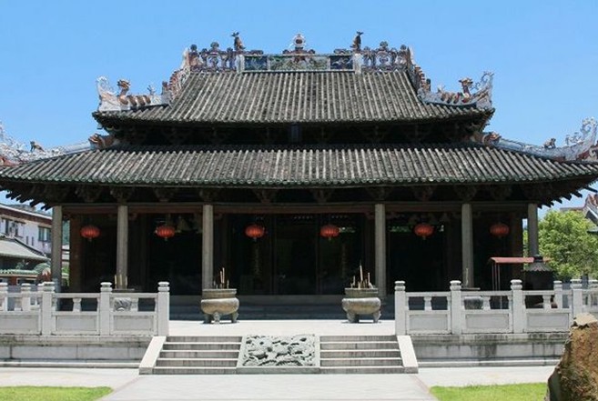 大成殿面闊5間17.36米。進深5間17.53米,建筑面積304平方米。平面幾乎是正方形,為宋元古制。殿中減柱4根,只余正中4根木質大金柱。殿前為閥3.22米、深8.7米的月臺,圍以磚砌欄桿,月臺前正中及左右各設踏道,月臺前設一磚石砌拜壇,闊6.15米、深4.73米。大成殿高19.4米,重檐歇山灰瓦頂。坡度平緩。出檐深遠。斗?疏朗。山面有山花板,各施懸魚一條。大成殿斗種類復雜,計有11種之多。下檐斗?梁架保持了宋代風格,柱頭和補間鋪作均為七鋪作單抄三下昂,兩根直昂昂尾均長二橡,甚為罕見,其出跳總長居全國現存唐宋同類斗(七鋪作)之首位。上檐前后檐斗,是元代遺構,其采用象鼻子昂的形制,為較早形態,其后流行于清代。大成殿殿身梁架采用大了袱結構法,省去4根重檐金柱和2根八椽,使殿內空間完整開闊,為華南建筑孤例。大成殿的裝修裝飾有濃厚的嶺南地方特色。殿門上部扇用宮式萬字花紋,版權所有山東聊城聊之旅國際旅行社有限公司,轉載必究!殿內重檐后金柱間的由額和順身串間置一花罩,花紋別致。大成殿上檐正脊中央為蓮花寶杯及光環,下墊以夔紋飾塊,正脊兩端為夔脊飾,靠內側兩邊各置一魚龍。戧脊為游龍卷草,龍身繞脊出沒,形體生動。下檐角脊上端為魚龍吻,下端為卷草,稍靠上為一虎。正脊和垂脊兩邊滿繪有“三獅會燕”、“金玉滿堂”以及松鶴等彩畫。灰瓦頂屋上檐邊用紅色陶質勾頭滴水鑲邊,下檐用藍綠色琉璃勾頭滴水鑲邊。