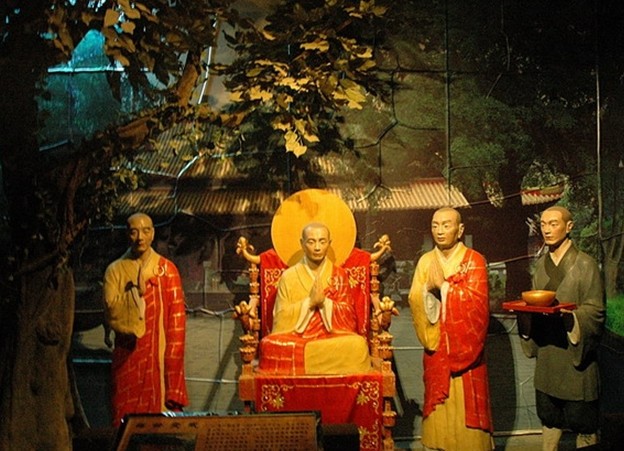 新辟一建筑作六祖惠能生平事跡陳列館,館內采用舞臺場景塑像的形式,講述六祖從新興誕生,到湖北求佛受衣缽,經肇慶懷集、四會隱藏,往廣州出家,到曹溪弘法,經端州插梅成蔭,回新州圓寂的過程,版權所有山東聊城聊之旅國際旅行社有限公司,轉載必究!每一個場景都栩栩如生。