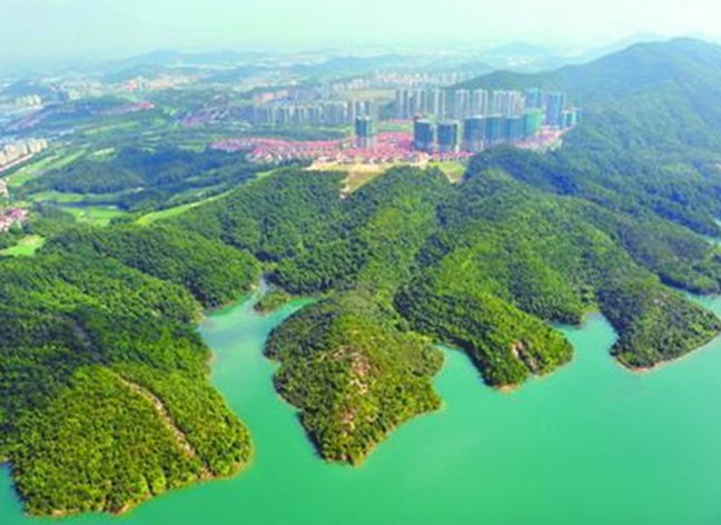 長江疊翠是中山市新十景之一,指的是長江水庫游覽區,這里離中山城區中心石岐東南九公里,是建設在著名抗日游擊根據地五桂山區北面的以水庫為中心的游覽區。水庫1963年基本建成,它包括里面相連的6條大水坑,7處山梁山埔和一道攔庫大壩,集水面積三十六 平方公里,庫容達五千萬立萬。雄偉的水庫大壩頂面寬6米多,長330米。往水庫區里望, 莽莽群山,重巒疊嶂,一望無限的松林,郁郁蔥蔥。