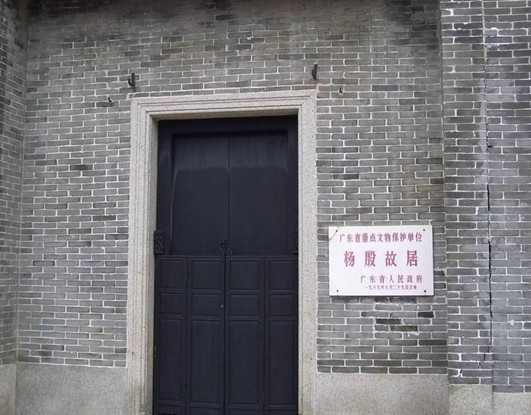 楊殷故居位于南朗鎮翠亨村,沿翠亨村大道,在那平整的總理大街中段,一幢石腳青磚,富有中國古建筑形式的房子。始建于清代咸豐年間,座西向東,占地面積1420平方米,建筑面積280平方米。有關部門對楊殷故居進行了修葺,楊殷故居于2002年8月12日正式對外開放,成為旅游景點。