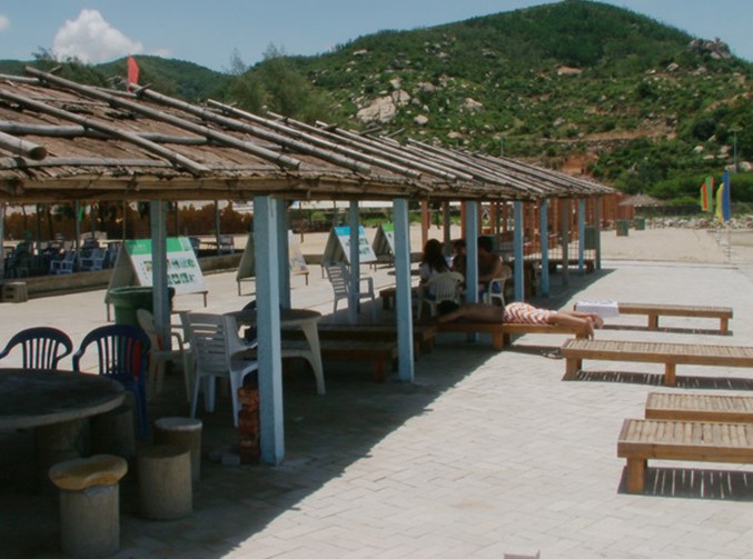 海灘建有多個六角亭、四角亭、半露天會議廳(晚上可變舞廳、演出廳)沙灘篝火、煙花、燒烤、各種沙灘體育活動。