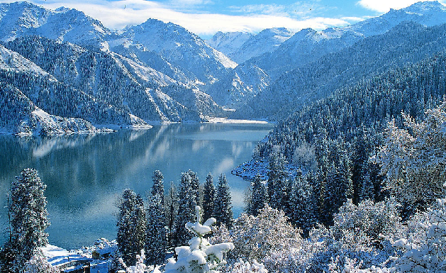 中國新疆維吾爾自治區(qū)著名湖泊。在烏魯木齊東北100公里,博格達峰北坡山腰。湖面海拔1910米,南北長3.5公里,東西寬0.8~1.5公里,最深處103米。湖濱云杉環(huán)繞,雪峰輝映,非常壯觀,為著名避暑和旅游地。天池成因有古冰蝕-終磧堰塞湖和山崩、滑坡堰塞湖兩說。由天池流出的三工河為山麓阜康縣農(nóng)牧業(yè)主要灌溉水源。天山天池風景區(qū)以高山湖泊為中心,雪峰倒映,云杉環(huán)擁,碧水似鏡,風光如畫。