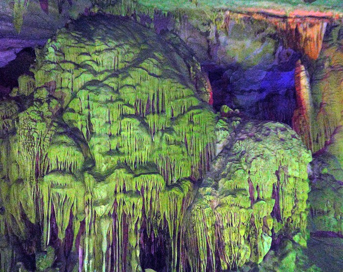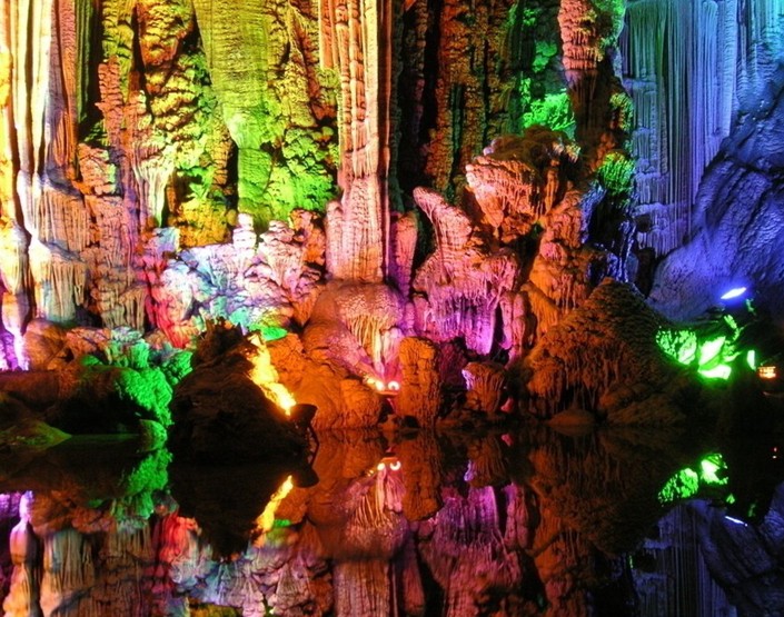 武隆是一個(gè)山清水秀的地方。其芙蓉洞也是國家5a級景區(qū),在芙蓉江旁。是1993年發(fā)現(xiàn),1994年對外開放的。它是世界上較大的溶洞群之一,洞內(nèi)全長2700米,幾乎包括了鐘乳石所有沉積類型。洞內(nèi)的“生命之源”“珊瑚瑤池”“巨幕飛爆”“石花之王”“犬牙晶花池”并稱為芙蓉洞“五絕”被世界洞穴專家譽(yù)為“斑斕輝煌的地下藝術(shù)宮殿”。特別是珊瑚瑤池系由水池中色澤淺黃的方解石晶花和浮筏石筍構(gòu)成,池水面積約30平方米,水深0.5—1.3米,水質(zhì)清沏透底,珊瑚瑤池以其面積最大的水下晶花為世所罕見,生長在晶花浮筏上的兩根翠玉般的石筍,尤如瑤池中的兩位妙齡仙女,更是洞中之珍品,舉世奇絕,而珊瑚池上的整個(gè)上部空間,更為琳瑯滿目的鵝管鐘乳石,石幔、石花和卷曲石等各類沉積物所布滿,顯得無比豪華富貴是洞號稱天下第一洞的標(biāo)志性景區(qū),據(jù)說此景全國獨(dú)一無二,世界上只有法國克拉姆斯洞穴才有,但它的水深和面積沒有芙蓉洞的大。真可謂“此景只應(yīng)天上有,人間那得幾回". 芙蓉洞是一個(gè)大型石灰?guī)r洞穴,形成于第四紀(jì)更新世(大約100多萬年前),發(fā)育在古老的寒武系白云質(zhì)灰?guī)r中。洞內(nèi)深部穩(wěn)定氣溫為16.1度。芙蓉洞主洞全長2500米,游覽道1860米,底寬12—15米以上,最寬69.5米;洞高一般8—25米,最高48.3米;洞底總面積37000平方米,其中輝煌大廳面積在1000平方米以上。整個(gè)芙蓉洞的最大靜態(tài)和客容量為185000人。 洞內(nèi)各類次生化學(xué)沉積形態(tài)(Speleothems,即鐘乳石類,芙蓉洞中有碳酸鹽巖和硫酸鹽巖兩類化學(xué)類型)琳瑯滿目,豐富多彩,幾乎包括鐘乳石所有沉積類型,達(dá)70多種。如:石鐘乳、石筍、石柱、石幕(小的為石幔)、石瀑布、石旗、石帶、石盾、石葡萄、珊瑚晶花等。其礦物組成主要是方解石和石膏,也有文石、水菱鎂石。其中大多數(shù)種類存在數(shù)量之眾多,形態(tài)(有針狀、絲發(fā)狀、絲縷狀、發(fā)簪狀等)之完美,質(zhì)地分布之廣泛,在國內(nèi)目前的發(fā)現(xiàn)中,多屬絕無僅有,而某些類型,更為國內(nèi)罕見,世界稀有。
