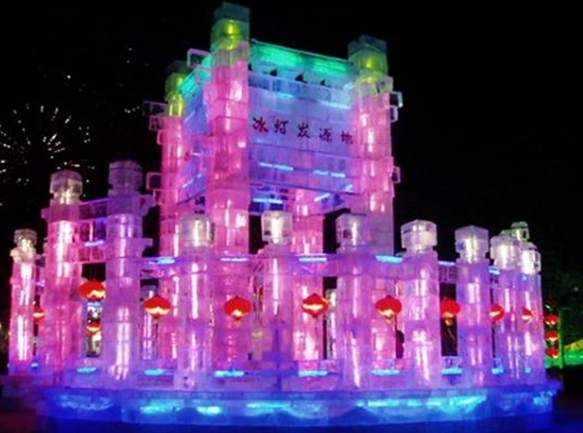 現(xiàn)代獨特的冰質(zhì)造型藝術(shù)與冰景造園藝術(shù),是冰城人開發(fā)利用冰雪資源最為突出的成就之一。它以松花江天然冰、自來水和各種電燈為材料,用砌筑、堆壘、雕刻、噴澆、冷凍和鑲嵌等方法,根據(jù)特定的主題需要和總體布局安排,在不同的園林空間加工出有關(guān)的冰景,冰建筑、冰雕塑、冰 瀑布、冰花壇、冰滑梯、冰書法、冰盆景、冰廣告、冰凍花、冰罩燈,組成若高低錯落、疏密有致的不同景區(qū),形成步步有景、步移景易的冰雪園林,同時配置各種燈光,增加動的成份,輔以音響效果,達(dá)到形、光、動、聲的和諧統(tǒng)一。冰燈藝術(shù)是以冰為載體,以燈為靈魂,融繪畫、雕塑、建筑、園林、文學(xué)、音樂等多種藝術(shù)于一身,并可運用光學(xué)、力學(xué)、聲學(xué)及電氣、機械等科學(xué)技術(shù)的新興的造型藝術(shù)。運用這種藝術(shù)形式創(chuàng)造出的珠宮琳館、瓊榭瑤橋、銀雕玉塑、冰山雪嶺、冰凌冰瀑,白晝間千姿百態(tài),晶瑩剔透,入夜后流光溢彩,萬紫千紅,象撲逆迷離的仙山瓊閣,似如夢如幻的水晶宮闕,且年年出新意,歲歲景不同,被稱為"永不重復(fù)的童話世界"。冰雕,即是冰燈中的一個品種,又是一種獨立的藝術(shù)形式。哈爾濱每屆冰雪節(jié)期間,都要分別組織職工、家庭、少年兒童和全國中學(xué)生以及國際性的冰雕比賽,比賽產(chǎn)生的數(shù)百件作品姿態(tài)各異,生動傳神,巧奪天工。