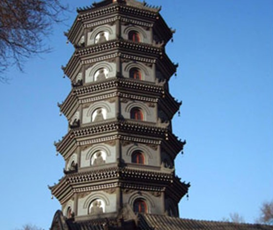 “浮屠”作為佛教徒膜拜的紀念物傳入中國,它的形狀很快被融化、改造。早在漢朝這種形象就已有了原型,既多層樓閣,這種中國固有的樓閣與印度傳入的“浮屠”相結合,便產生了中國形式的佛塔。多層樓閣在下,樓閣頂上置放“浮屠”形式的屋頂,稱為剎頂。于是,一種新的建筑樣式出現了。佛塔作為安放佛骨舍利的紀念物,起初是建立在寺院的中心位置,供佛徒頂禮膜拜。隨著佛像的出現,供奉佛像的大殿逐漸替代了塔的中心位置。以后寺廟的建筑,佛塔被移至大殿之后,或者放在大殿中軸邊的院落里。塔形體高大,具有宣揚和招徠的作用,因此,它成為佛教建筑中必不可少的標志性建筑。