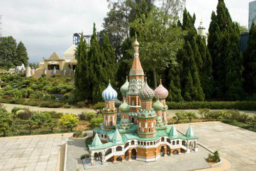 歐洲迷你景觀區包括歐洲許多代表性建筑,例如“古典時期”的希臘神殿、“羅馬式”的伏姆斯大教堂、圣法蘭西斯教堂的“哥德式建筑”及結合了回教拜占庭風格、哥德式尖拱、仿羅馬式拱廊的圣巴西爾大教堂。