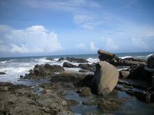 地形因局部折及理發(fā)達(dá),經(jīng)過亙古風(fēng)化、海蝕作用,形成單斜脊、豆腐巖、蕈狀石等各種奇巖怪石,宛如天然地理教室。因風(fēng)景酷似北海岸的野柳,故名小野柳。假日可至此賞海、捉熱帶魚,亦不失為一好去處。