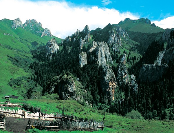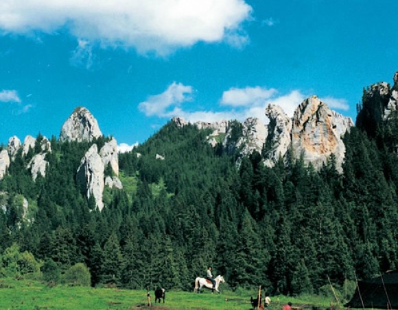 則岔石林全長(zhǎng)10公里,是一處由地殼變化上升造成的硅灰?guī)r石景觀,經(jīng)過(guò)長(zhǎng)年累月的風(fēng)雨剝蝕和流水的侵蝕,形成各異的奇峰怪石,版權(quán)所有山東聊城聊之旅國(guó)際旅行社有限公司,轉(zhuǎn)載必究!巍然屹立,遠(yuǎn)遠(yuǎn)望去,如一片巖石森林,有猴子窺月、玉女老嫗、將軍峰、和尚石等星羅棋布的奇峰怪石。壁立千仞的石峰間有長(zhǎng)近百米的“石門一線天”,寬僅容一馱畜經(jīng)過(guò),潺潺流水穿石門而過(guò),石門內(nèi)修有百米的木棧道,供游客出入,有一夫當(dāng)關(guān),萬(wàn)夫莫開(kāi)之險(xiǎn),是進(jìn)入石林的必經(jīng)之路。壁立千仞、刀壁斧削般的則岔石林,以其鬼斧神工的奇特造型和森林茂密的秀麗景色,具有峨嵋之秀、華山之險(xiǎn)、泰山之雄、黃山之奇的特點(diǎn),可與昆明石林媲美,與四川九寨爭(zhēng)秀。這里是造山運(yùn)動(dòng)地塊抬升后,經(jīng)流水侵蝕、風(fēng)雨剝飾而形成的大面積硅灰?guī)r石林在則岔石林的峰頂及巖洞中,有大量古海洋生物化石。在藏族人民的心中,則岔石林的每一座山峰,都與藏族人民的英雄之神格薩爾王的故事有著密切聯(lián)系。洮河南岸溯則岔石林向南,山青水綠,奇花異草飄散幽香,珍禽異獸出沒(méi)林間。遠(yuǎn)遠(yuǎn)望見(jiàn)聳立的石壁組成天然屏障,雄偉奇險(xiǎn)。行至石林腳下,則見(jiàn)一條石峽訇然裂開(kāi),則岔河從中奔騰而出。相傳此“一線天”為藏族史詩(shī)中的英雄格薩爾一劍劈開(kāi),成為進(jìn)入石林的唯一通道。如今,石壁上還留有馬蹄印痕,相傳為格薩爾坐騎所為。 則岔石林景區(qū)共有三道石門,“一線天”為頭道石門,越往里則越險(xiǎn),風(fēng)景也越奇,至目前尚有人跡未到之處。則岔石林擁有豐富的自然景觀和動(dòng)植物資源,1998年8月,則岔—尕海被國(guó)務(wù)院列為國(guó)家級(jí)自然保護(hù)區(qū)。