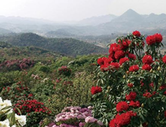 黃坪”十里杜鵑“景觀一一位于大方縣普底景區的黃坪十里杜鵑是百里杜鵑的縮影、代表和精華。在這十里范圍內,杜鵑花種類繁多,色彩豐富,花色多變。登高四望,花區宏大場面盡收眼底,這一山全是紅色,艷 百里杜鵑國家森林公園如云霞,那一山呢?又全是白色杜鵑,如白雪皚皚,嫻靜淡雅,此外還有紫杜鵑山,金杜鵑山、混色杜鵑山,爭奇斗艷、令人目不暇接。黃坪所在的普底鄉,少數民族占60%,民俗獨特,少數民族節日正直杜鵑花盛開的季節,彝族的插花節、火把節等活動豐富多彩,其民族風情令人流連忘返、回味無窮。紅二軍團六師,曾在這里打過著名的”黃家壩阻擊戰“,流傳著許多可歌可泣的動人傳說,花區建有紅軍長征烈士紀念碑。