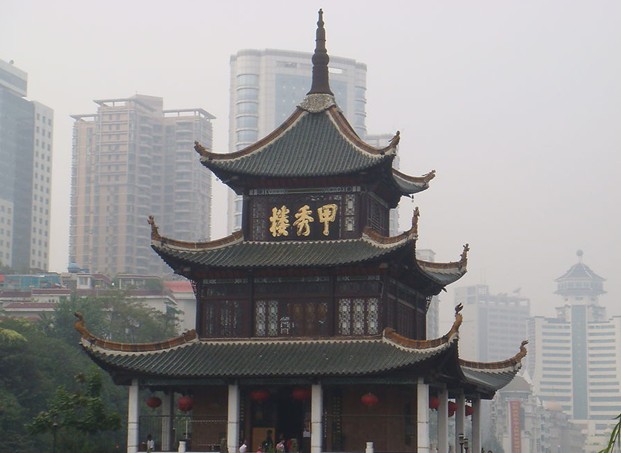【1】甲秀樓,中國古代名樓,坐落在中國貴州省貴陽市城南的南明河上,以河中一塊巨石為基而建。始建于明,后樓毀重建,改名“來鳳閣”。清代多次重修,并恢復(fù)原名。甲秀樓建在城南涵碧潭鰲磯石上。從古到今,甲秀樓歷經(jīng)六次大規(guī)模的修葺和400年的風(fēng)吹雨打,依然矗立不倒,見證了筑城400年歷史。