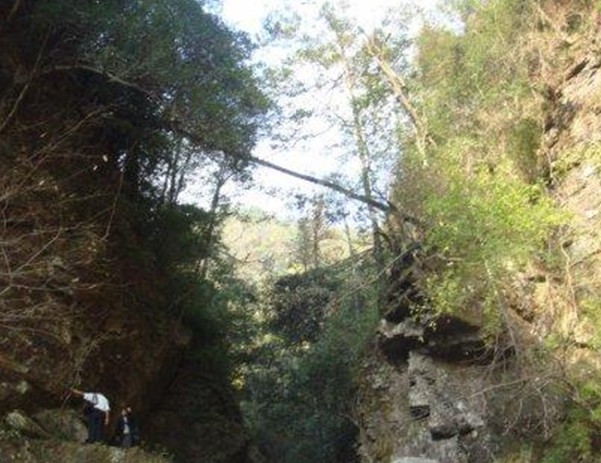 虎口峽內,立在石上,舉頭仰望,只見懸巖上沖下一條“大白鏈”,洶涌奔騰,聲震山谷,正如元代汪克寬寫的詩句:“翠巖懸瀑鏘瓊瑤,雷霆霹靂轟云霄”那般壯觀,這就是峽谷中有名的龍泉瀑布。