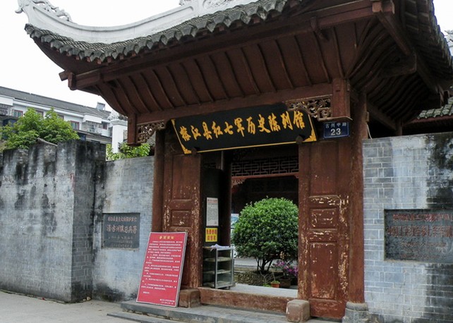 古州紅七軍軍部舊址位于貴州省古州中路西側,原為清代鎮臺衙門,已被評為省級文物保護單位。1930年4月,紅七軍為擺脫國民黨桂軍對右江革命根據地的圍困,開展游擊戰爭,于30日擊潰黔軍第二師副師長史遠勛部,攻占榕江縣城(古州),紅七軍軍部駐清鎮臺衙門內,張云逸軍長和李明瑞總指揮在這里主持召開軍事會議,接見各界人士,宣傳黨和紅軍的方針、政策。