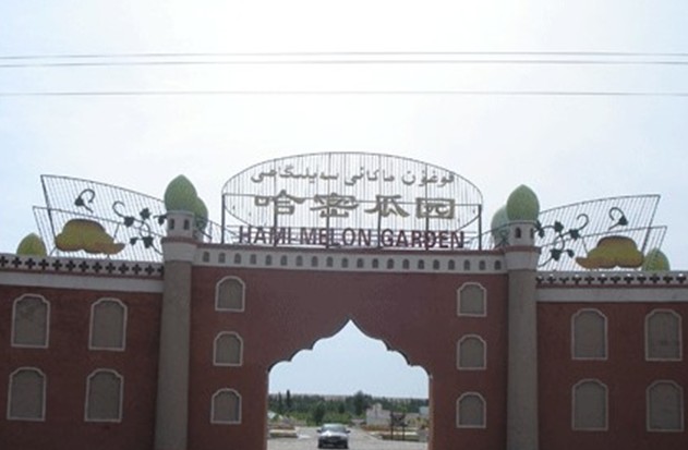 哈密市花園鄉(xiāng)喀拉塔勒村的“哈密瓜園”,占地面積18511.5畝,距哈密市區(qū)17公里。哈密瓜園分5個大區(qū),分別為入口區(qū)、瓜園區(qū)、水上樂園、百果園休閑娛樂區(qū)和自然(戈壁)風(fēng)景觀光區(qū)。入口區(qū)主要有烽火臺、瞭望塔、瓜園大門、哈密瓜展廳、駝馬客棧、南湖館驛、文化墻、停車場等相關(guān)配套設(shè)施,總占地70000平方。瓜園區(qū)主要有哈密瓜種植區(qū)、品嘗區(qū)、葡萄長廊觀光等景點,總占地面積3873.1畝。