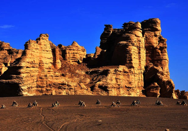 魔鬼城位于哈密市五堡鄉(xiāng)以南,距五堡鄉(xiāng)20Km,距哈密市約100Km,由于它神秘莫測,不熟悉地形的人若遇風(fēng)暴,有迷失方向的危險,哈密雅丹地貌東起煙墩外的駱駝峰,經(jīng)雅滿蘇鐵礦,大南湖煤礦,到五堡沙爾湖十三間房等長約400公里,寬約5-10公里,在哈密屬于特殊的地理環(huán)境,它是經(jīng)過漫長的風(fēng)蝕自然而形成的。在魔鬼城可以看到那些酷似城堡、殿堂、佛塔、碑、人物、禽獸形態(tài)各異的景觀、令人眼花繚亂的陡壁懸崖、以及混跡巖礫中五光十色的瑪瑙、隨處可見的硅化木、枝葉清新的植物化石,偶爾可獲得象恐龍蛋化石的小圓石頭,海生的魚類化石、鳥類化石,當(dāng)夜幕降臨時有時會聽到鬼哭狼嚎令人發(fā)指的嘶叫,因此才被人們稱之為“魔鬼城”。 版權(quán)所有山東聊城聊之旅國際旅行社有限公司,轉(zhuǎn)載必究!其實這里還真正存在著古城堡建筑、古民房遺址―艾斯克霞爾古城堡:離地面約六米的風(fēng)蝕臺上的長方形的土夯建筑有高約五米,前面有門有窗的居住地,這就是人類活動之地、是古絲路的驛站或是哈密王朝的西南前哨,據(jù)當(dāng)?shù)厝送茰y,此地西面的沙爾湖(由流沙通向羅布泊)干涸之前,這里也有村莊人家,當(dāng)水源游移(地殼變化)沙爾湖消失后,林木飛鳥在風(fēng)沙中,部分變?yōu)榛说鼐幼〉娜酥坏帽尘x鄉(xiāng),連先祖的遺骨也移走了、至今僅有遺址。哈密魔鬼城已是國家AAA級景區(qū)。