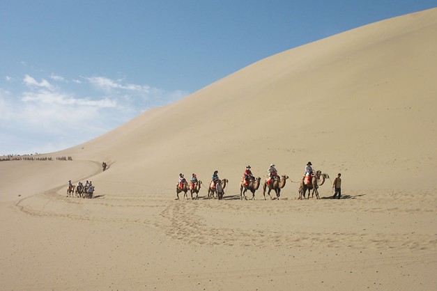 巴里坤鳴沙山位于新疆巴里坤哈薩克自治縣境內,西距縣城60公里,四周被豐美碧綠的草場所包圍,猶如湛藍大海中的一座金色小島。鳴沙山形似一朵蘑菇,高約百米,沙丘陡峭,其下有水泉,左右兩側有河流通過。版權所有山東聊城聊之旅國際旅行社有限公司,轉載必究!據說這里是唐代女將樊梨花西征遇難的地方,聽到的沙鳴,就是女兵們當時擂鼓助陣和沖殺鼓掌之聲。