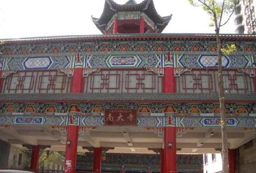 南大寺始建于1919年,經歷了民國初年、1976年和1987年的三次重修,歷經滄桑。南大寺占地面積4.7畝,建筑面積464平方米,磚木結構。禮拜大殿為平面呈凸字形,大殿分為內、外殿,內殿約容納3O0人,外股容納5O0人,大殿臺子能容納400人,屋頂前部檐作歇山式,蓋琉璃瓦。寺內有阿訇1名,教民110O戶,均屬回族,遵行哲赫忍耶。