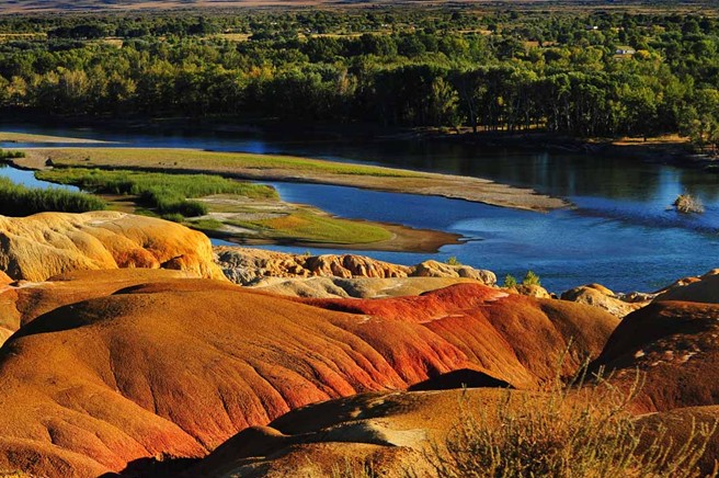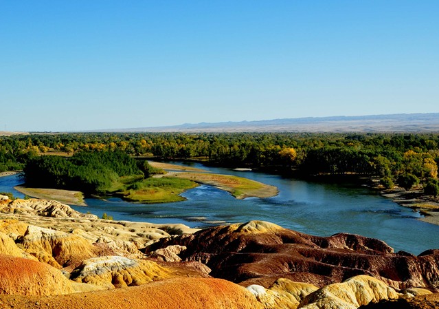 五彩灘一河兩岸,南北各異,是國家4A級景區。五彩灘又稱五彩河岸,位于額爾齊斯河流域,由于長期受風蝕水蝕以及淋溶等自然作用的影響而形成的,屬于典型的雅丹地貌,“雅丹”是地理學名詞,維吾爾語“險峻得土丘”之意。其南邊是我國唯一向西流入哈薩克斯坦--俄羅斯--北冰洋的額爾齊斯河,僅次于伊犁河的新疆第二大河。