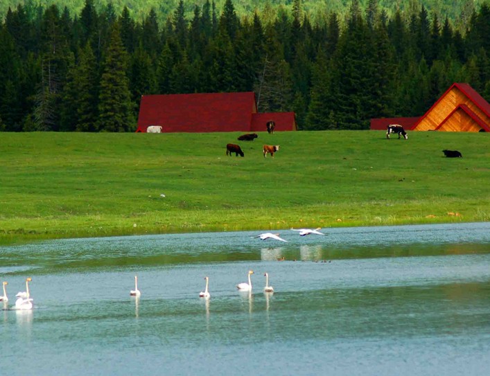 在新疆巴音布魯克草原中心地帶的巴音烏魯鄉以北 2公里處,有一條東西長30公里、南北寬10公里的高山湖泊,海拔2500~3000米,湖水瀠回如帶、清澈見底,水中生長著大量水生植物,四周群山環抱,綠草如茵,高山雪嶺倒映湖中,形成神奇迷離的自然景觀。每逢春末夏初,冰雪消融,大地復蘇,旅居在印度、緬甸、巴基斯坦,甚至遠到黑海、紅海和地中海沿岸諸國的天鵝和雁鷗,不遠萬里,成群結隊地飛到這里筑巢、換羽、求偶、生兒育女、棲息繁衍。這就是我國著名的巴音布魯克天鵝湖自然保護區。天鵝湖鳥類資源十分豐富,水禽種類多、數量大。據考察這里有大天鵝、小天鵝、疣鼻天鵝一萬余只;還有灰雁、斑頭雁、白頭鷂、燕鷗、白鷺等 100多種水鳥。其中灰鶴、黑鶴、羽鶴、大白鷺、金雕、禿鷲、胡兀鷲近10種珍稀鳥類,屬國家一、二級保護動物。秋末時節,天鵝們帶著各自“小寶貝”,時而歡騰在熱鬧的湖水中,時而擊水而起,版權所有山東聊城聊之旅國際旅行社有限公司,轉載必究!騰飛高空鍛煉著飛越千山萬水的本領。陽光下天鵝、湖水、山峰和云影構成一幅“片水無痕浸碧天,山容水態自成圖”的畫卷。巴音布魯克能夠成為天鵝的故鄉,不僅得益于這里獨特的地理環境和獨特的氣候條件,而且得益于當地蒙古族牧民把天鵝視為貞潔之鳥、美麗的天使、吉祥的象征加以非常的愛護。保護站在天鵝湖畔的高地建有一座瞭望臺,可供旅游者觀察天鵝的生活動態。