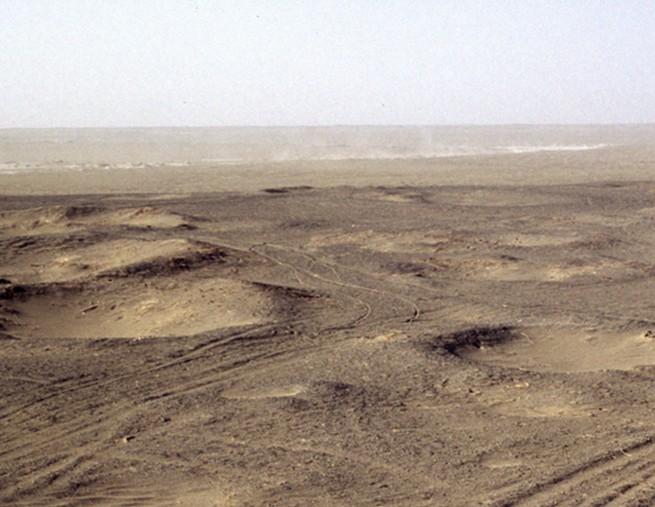 扎滾魯克古墓群墓葬區(qū)在地圖上的地理位置坐標(biāo)是:38°26′9″東經(jīng)85′3′28″。墓葬區(qū)南北長工100米,東西寬750米,在5公里遠(yuǎn)處有來利勒克遺址,在莫葬區(qū)1公里處及來利勒克遺址附近有古代且末河河床遺址。現(xiàn)在的且末河位于莫葬區(qū)東10公里處,由南向北流。扎滾魯克古墓群地表無任何植被,為沙質(zhì)土壤。部分墓葬地表有跡象,或有凹形陷坑或露出棚木的葦草。