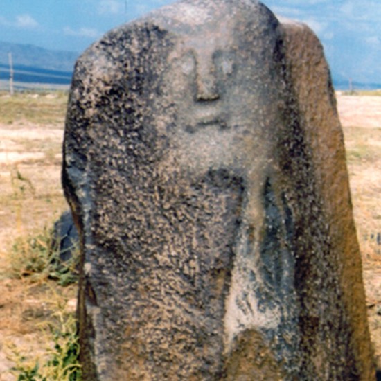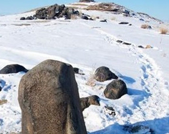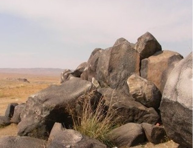 隕石散落堆積在東西長約40米,南北長約110米的戈壁灘上,最大一個隕石堆,高約3米,約百余塊,石塊呈灰黑色,質地堅密,棱角平滑,最大的一塊長度達2.5米。著名的卡擔塔什石人墓就位于隕石群堆西面約400米處,墓穴四周用黑石一圈圍護,墓邊兩塊高約1 米的黑石上分別刻有一男一女的人像,版權所有山東聊城聊之旅國際旅行社有限公司,轉載必究!據推測這是墓主人的遺像。女主人頭帶著頭巾,圓形臉,酷似現在游牧民族蒙古族婦女。從石料的顏色和質地推測,石像就是從隕石堆中搬運來的隕石體雕刻成的。 該黑色巖石巖性致密,其中有些石塊中空,用石擊之能發出鐘磬般響聲。
