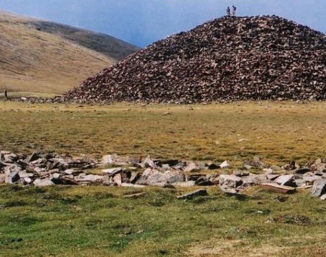三海子墓葬及鹿石位于新疆維吾爾自治區(qū)青河縣查干郭愣鄉(xiāng)三海子夏牧場(chǎng),為青銅時(shí)代的一處墓葬,距今約4000年。在面積約16.25平方公里地域的四個(gè)分布區(qū)內(nèi)計(jì)有石圍石堆墓、石棺墓30余座,鹿石19通。什巴爾庫(kù)勒石圍石堆墓,石堆直徑78米,殘高25米;石圍直徑210米,寬3~5米。石堆與石圍之間有四條片石鋪成的通道,最寬的通道達(dá)1.6米。墓環(huán)水而建,氣勢(shì)宏偉,結(jié)構(gòu)獨(dú)特,是歐亞草原少有的特大規(guī)模墓冢之一。