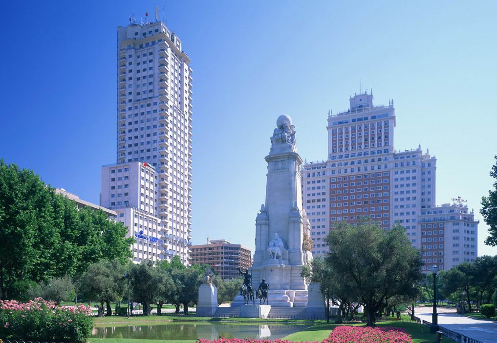 市內現代化的高樓大廈與風格迥異的古建筑摩肩并立、相映生輝。樹林、草坪和各種造型別致的噴泉和雕有古代小亞細亞人尊崇的自然女神尼貝萊塑像噴泉最吸人入勝。宏偉的阿爾卡拉門坐落在阿爾卡拉街頭的獨立廣場上,共有5道拱門,是馬德里著名的古建筑之一。財政部、教育部和西班牙的主要銀行坐落在阿爾卡拉大街兩側,建于1752年的王家美術學院收藏著牟利羅和戈雅等西班牙美術大師的名作。巍峨的塞萬提斯紀念碑聳立在西班牙廣場上,碑前有堂吉訶德和桑科•潘扎的塑像,巨大的碑身倒映在前面的水池之中,碑兩側是蔥郁的樹木;有“馬德里塔”之稱的西班牙摩天大廈位于廣場一側。
