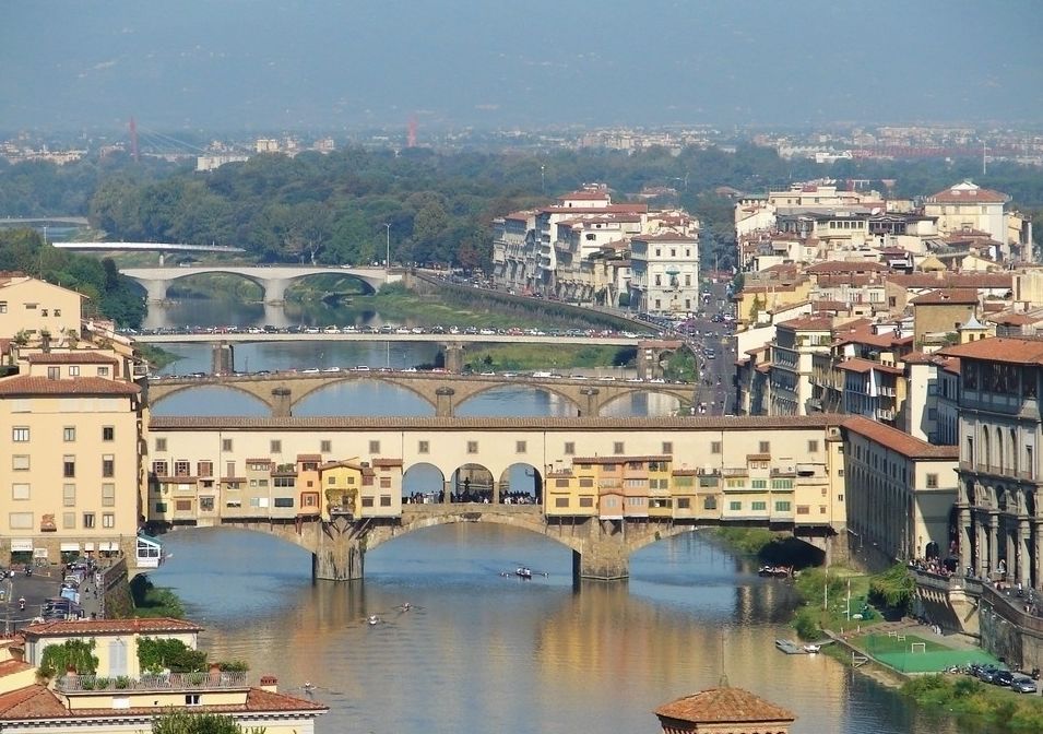 9、維琪奧橋(Ponte Vecchio):建于1345年,為翡冷翠最古老的橋梁。Vecchio這個字是古老的意思。維琪奧橋上有二層樓的建筑,以前是烏菲茲宮通往隔岸碧提王宮的走廊。橋上兩邊都是特產品的專賣店,商店的背后伸展到河上,特產店以販賣寶石和貴重金屬為主。西尼奧列廣場位于佛羅倫薩市中心,這里有一座建于十三世紀的碉堡式舊宮(現為市政廳)。舊宮上的塔樓高94米,它是意大利最奪人眼目的公共建筑之一。版權所有聊城聊之旅國際旅行社有限公司,轉載必究!舊宮側翼的走廊,當初為修道院院長和行政長官宣讀文告的會場,現在連同整個廣場成為了一座露天雕塑博物館,其各種石雕和銅像作品栩栩如生,形象傳神,如人們所熟悉的米開朗琪羅的《大衛像》復制品等,令參觀者和各國游客嘆為觀止。