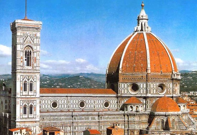 2、圣母百花大教堂(The Duomo):花之圣母大教堂(又譯百花大教堂、佛羅倫薩大教堂)是佛羅倫薩的地標,外觀以粉紅色、綠色和奶油白三色的大理石砌成,展現著女性優雅高貴的氣質,故稱為“花的圣母寺”(Santa Maria del Fiore)。